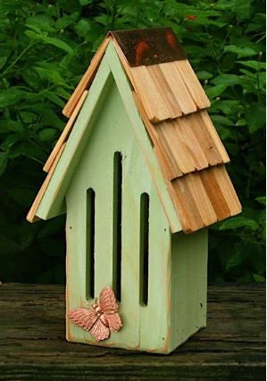 Hand painted with non-toxic acrylic latex. Color and texture variations are characteristic of the rustic hand made shelter. Butterfly Breeze is complete with wood mounting stake and easy clean-out.