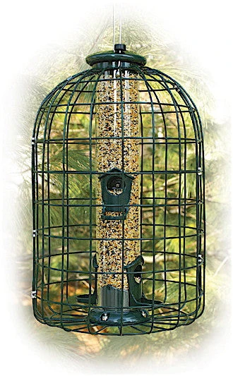 Caged Squirrel Proof Bird Feeder accommodates most seed mixes.