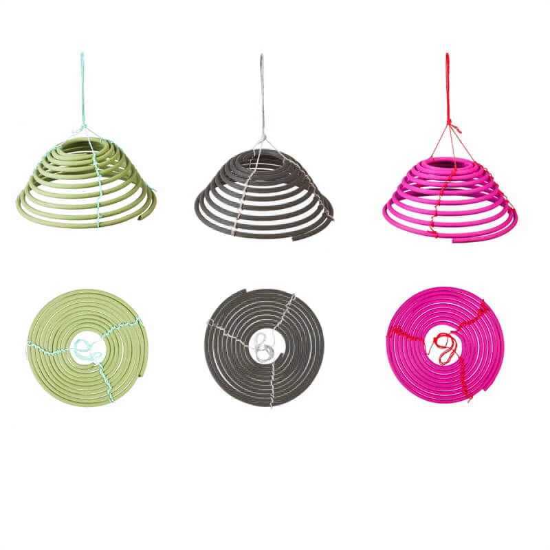 Spiral Bug Deterrents are effective against insects and safe for use around food, children and pets. Set of 3 coils in vivid summer colors; lime, pink and grey. Each citronella spiral burns for approximately 14 hours (42 hours total for set).