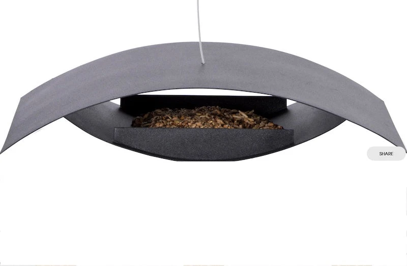 Contemporary hanging feeder in jet black is fine art to attract smaller feathered friends!
