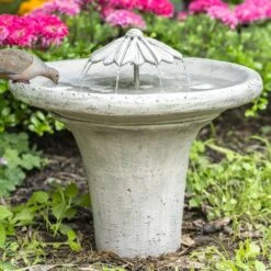Handcrafted in the USA, this unique birdbath provides a refuge for birds and a cool focal point in the landscape.