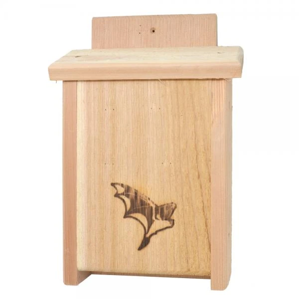 Grooves on the inside front and back provide a cozy place for bats to easily cling and roost. Mount 15-20 feet high on pole, structure or tree. Durable cedar construction, USA made.