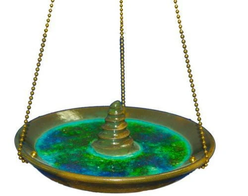 Sparkling fruit feeder does double duty for butterflies too. Create an oasis to attract fruit-loving birds with this unique feeder. Gorgeous hues found in nature are fused together from recycled glass. Stunning artisans’ piece adds a distinctive and natural beauty to complement any area.