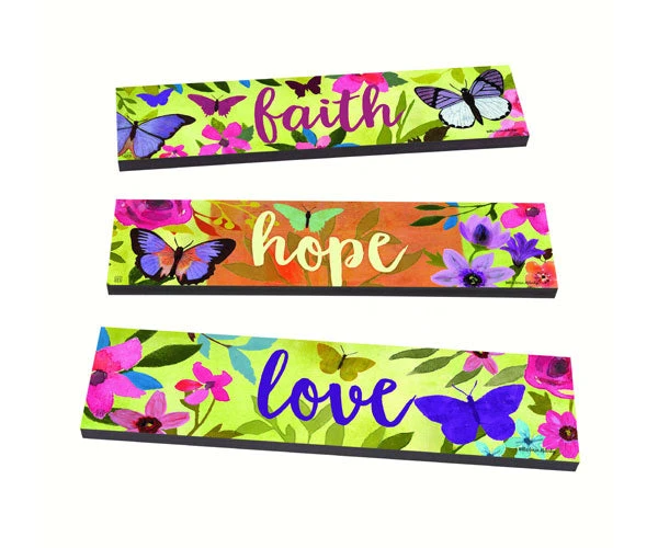Vinyl Art Planks create a whimsical path in the garden with vivid hues and soulful words that are fade-resistant. Unique garden decor looks like wood but is crafted of PVC/Vinyl. All designs are reproductions of original artwork with wood-grain texture.